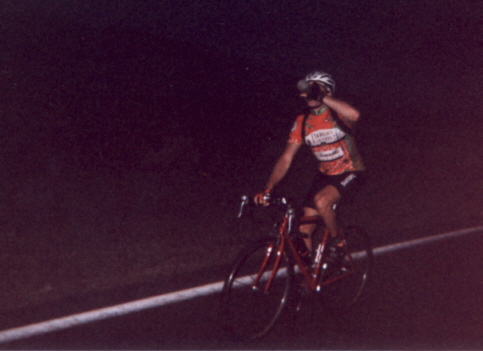 watering never stops, even at 30 miles per hour in pitch darkness. Tom swigs on the